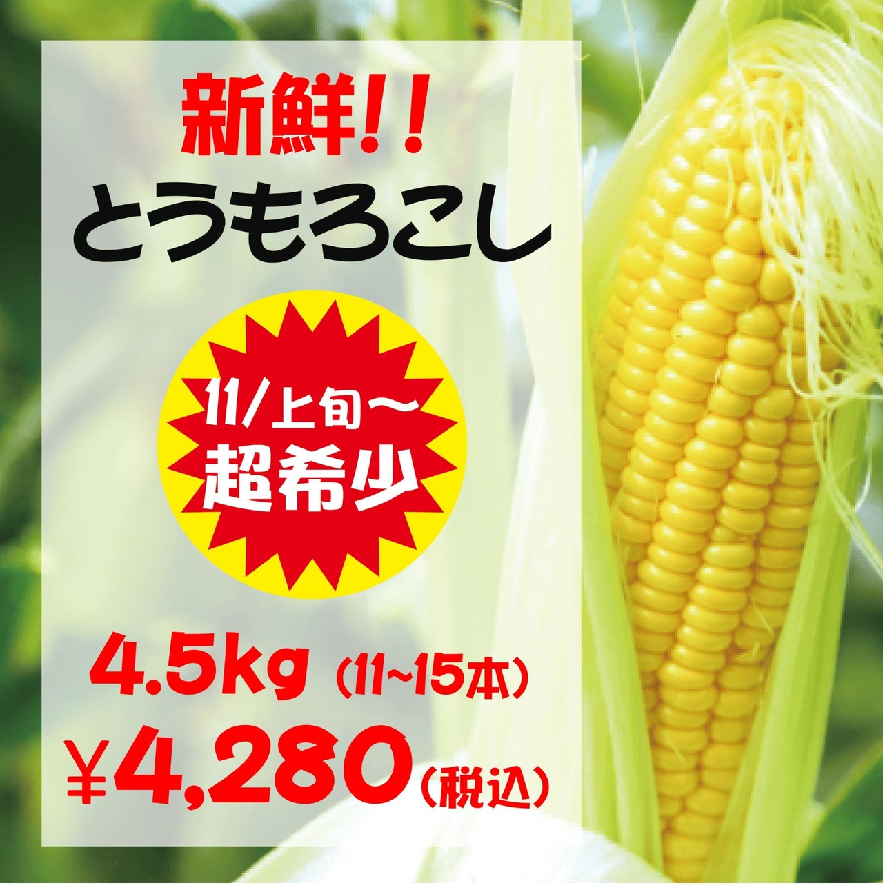 【11月~出荷】朝採れ「とうもろこし 4.5kg(11~15本)」★送料込★